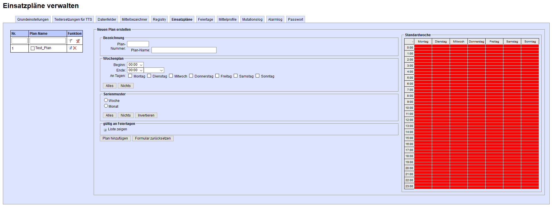 Mit dem optionalen Modul „Einsatzpläne“ können Sie Einsatzzeiten abhängig von Tages- und Nachtzeit, Wochen- und Feiertagen, Kalenderwochen und Monaten festgelegen.