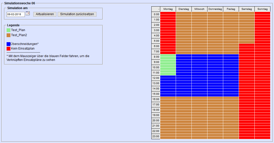 Wählen Sie im Abschnitt „Simulationswoche“ ein beliebiges Datum aus, um zu sehen wie der Einsatzplan in dieser Woche aussehen wird.