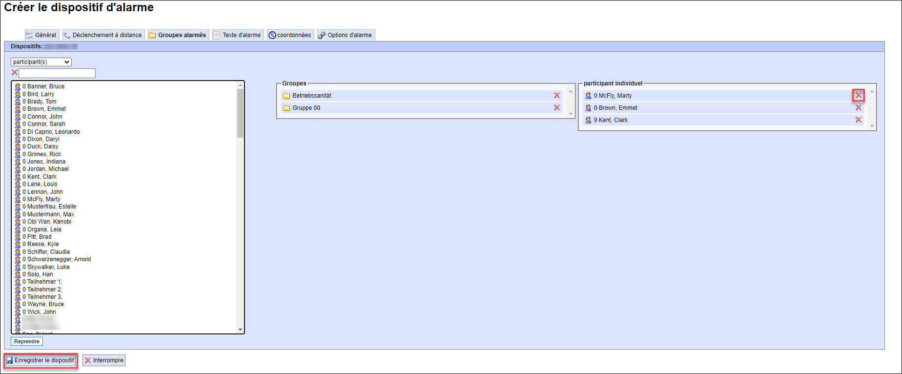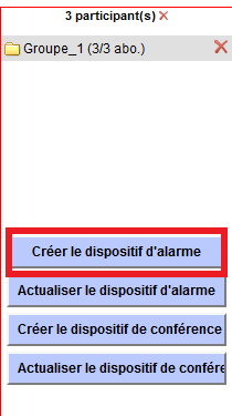 Le menu «Liste des participants» s’affiche. Cliquez sur «Créer le dispositif d’alarme» dans la colonne de droite.