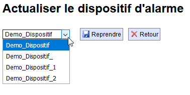 Vous accédez à nouveau au menu “Gestion des dispositifs d’alarme” et pouvez, de la même manière que pour la “Introduire un nouveau dispositif d’alarme”, gérer le dispositif d’alarme.