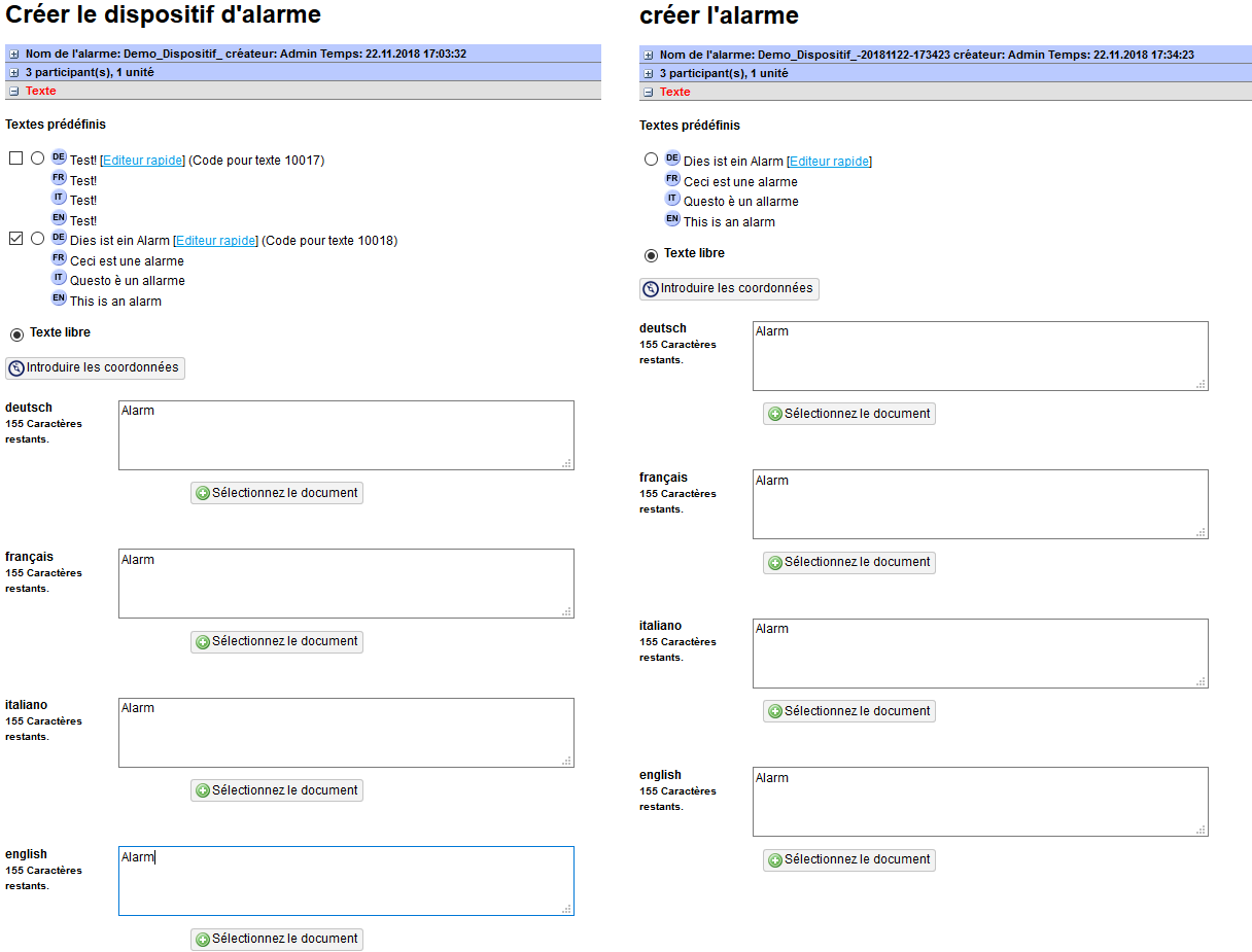 La création d’un dispsitif d’alarme a été simplifiée et uniformisée et peut être créée de cette manière: