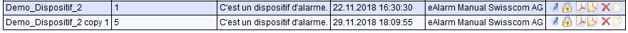 : pour créer une copie du dispositif d’alarme (dont le nom contiendra la mention «copy») qui contiendra toutes les données du dispositif original mais des codes de déclenchement différents.