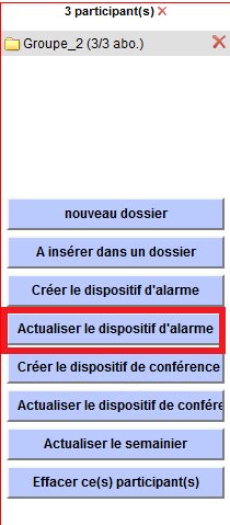 Dans le menu «Actualiser le dispositif d’alarme», vous pouvez sélectionner le dispositif d’alarme auquel vous souhaitez ajouter les participants.